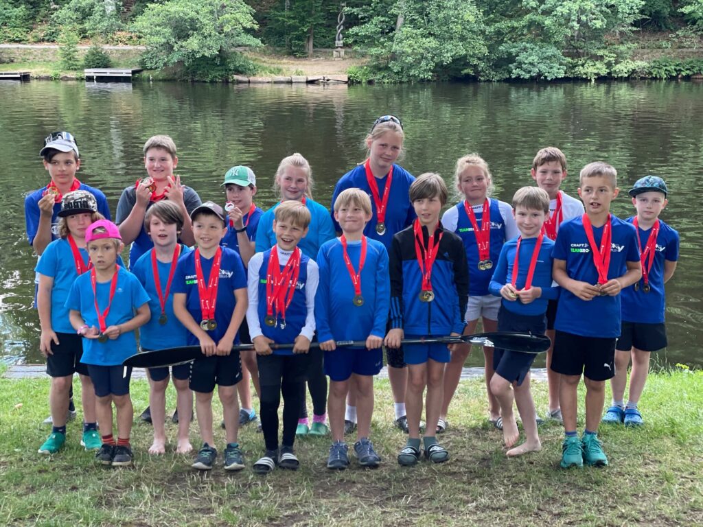 So konnten Ron Zessner, Luan Große, Shania Richter, Merle Sehm und Ole Thalheim jeweils die Goldmedaille im K1 über 200m gewinnen. Maily Bilke mit Shania im K2 ebenso. Ole Thalheim fuhr mit Fabian Oetzel im Zweier ebenfalls zu Gold. In der Schüler B Staffel freuten sich Ole, Fabian, Maily und Philipp über den Sieg.