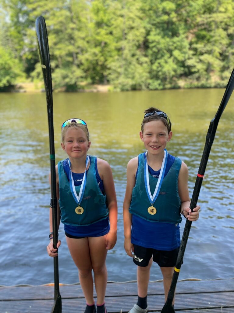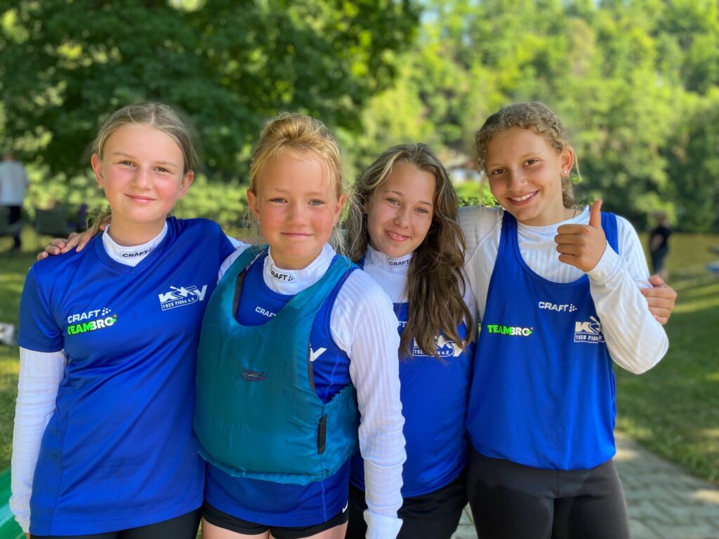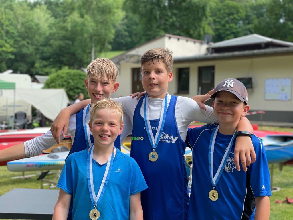 e zwei Jungs mit Karl Fröhner und Fabian Oetzel ebenfalls die Goldmedaille um den Hals hängen. Das Schülerinnen B-Team um Maily, Lucy, Kim, Merle und Shania erkämpften jeweils Silber in der Staffel und im K4.